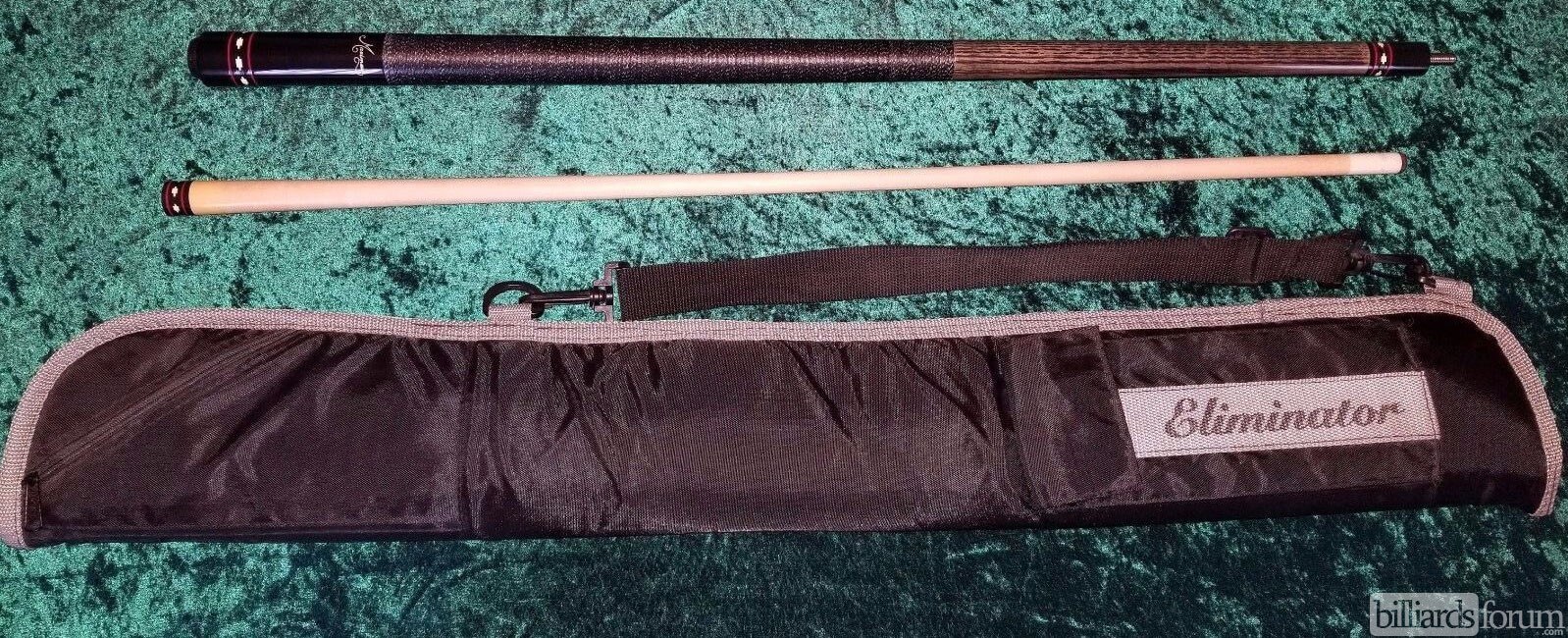 Photo of a Maximum MAX-6 pool cue for sale with an Eliminator soft pool cue case.