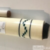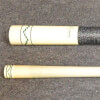 Photo of a Meucci Maximum MAX-7 pool cue butt sleeve. This cue has a white and green linen wrap.