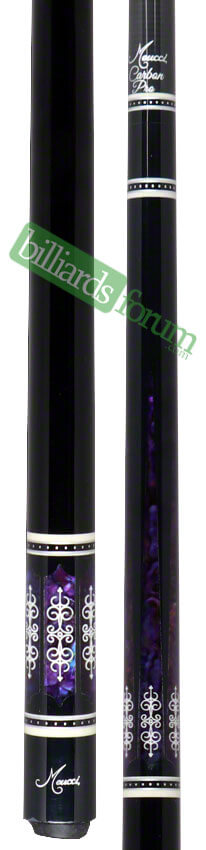 - Cue Short Description: Black Meucci 21st Century Series #3 Cue with Purple Paua Shell Inlay, Model 21-3-C-P