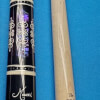 Close-up of a black and purple Meucci 21-3C forearm. It features purple paua shell inlays instead of the standard blue ones typically found in the 21-3 cue model.