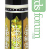 Pictures of the forearm of a black Meucci 21-3 pool cue with yellow paua shell inlays.
