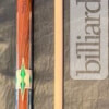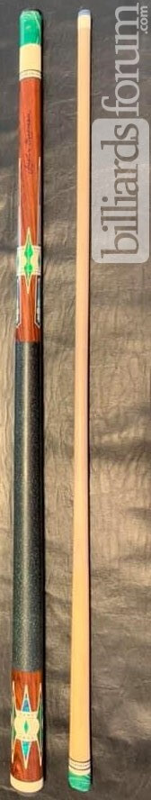 A custom Meucci 21-6 cue made for professional pool player Justin Bergman. It has Justin Bergman's signature on the forearm.