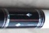 | Butt Sleeve: | Imitation ebony with orange (orange is very close to a red-ish color) and purple lines alternating imitation mother of pearl with orange dots. Encased by imitation ebony/aluminum/imitation mother of pearl and orange veneer squares rings. |