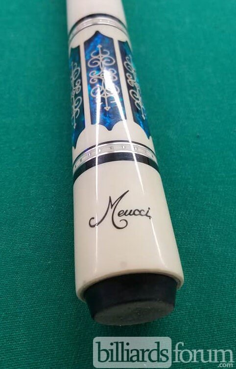 Photos from a recent eBay sale of a brand new Meucci 21-3 Pool Cue with a Black Dot shaft. The sale ended in May 2017 with no offers. Asking price was $765, and the cue was being sold by Cue & Barrel, an authorized Meucci Dealer.