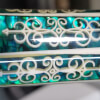 A close-up picture of the blue paua shell inlay in the forearm of the Meucci 21st Century #3 pool cue. The Meucci 21-3 model pool cue is part of the Meucci 21st Century Series line of pool cues.