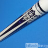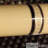 | Butt Sleeve: | Synthetic ivory with six brilliant purple Paua Shell recessed points (windows) with a white scrimshaw design. Encased by imitation ebony, aluminum, and black rings with aluminum veneer blocks. Ivory stained and silver rings at the top and base of the sleeve. |