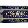 | Forearm: | Grey/smoke stained birds eye maple with six recessed brilliant purple paua shell point-like inlays. Within those, an intricate scrimshaw design is added to further accent this stunning work of art. |