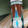 Here's another photo of the custom Meucci 21-6 made for me, Chris Binder. It's a 60 inch cue with a 30/30 split and added ringwork. It also has alternating blue and green inlays.