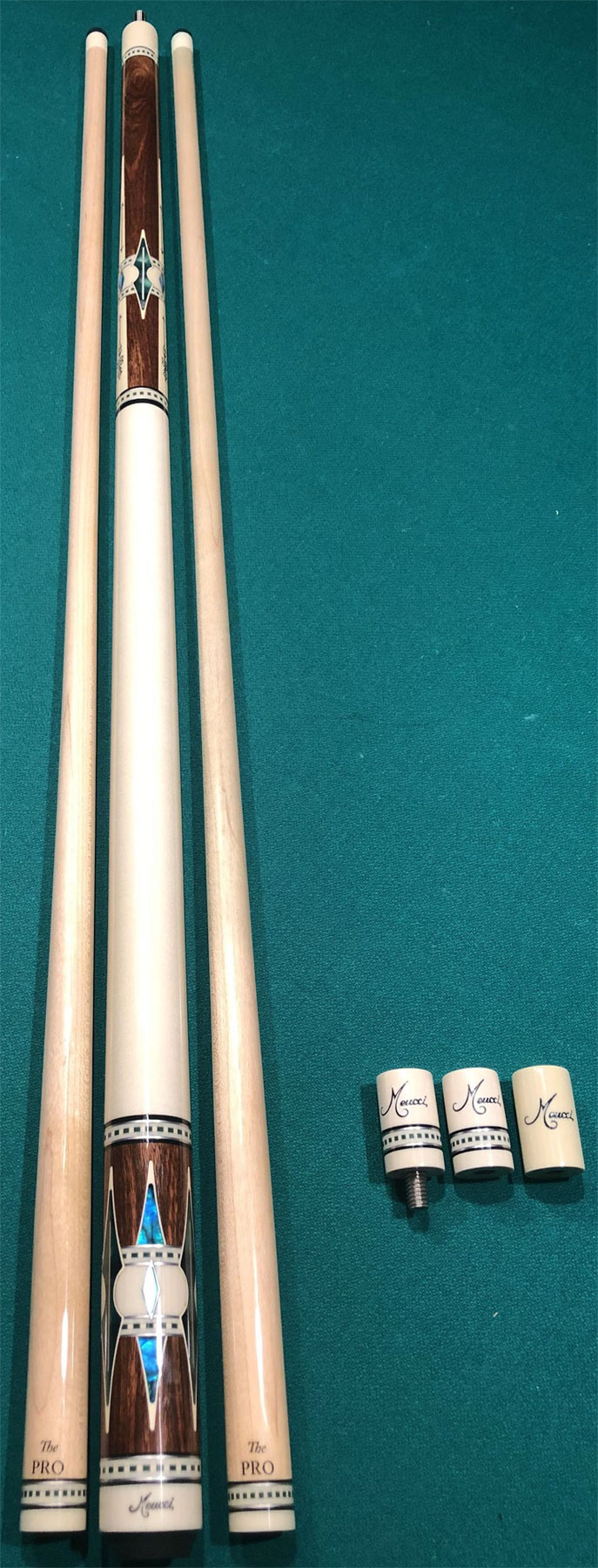 | Shaft: | This custom Meucci 21-6 cue was ordered with two matching 30" Meucci The PRO shafts with brass inserts. |