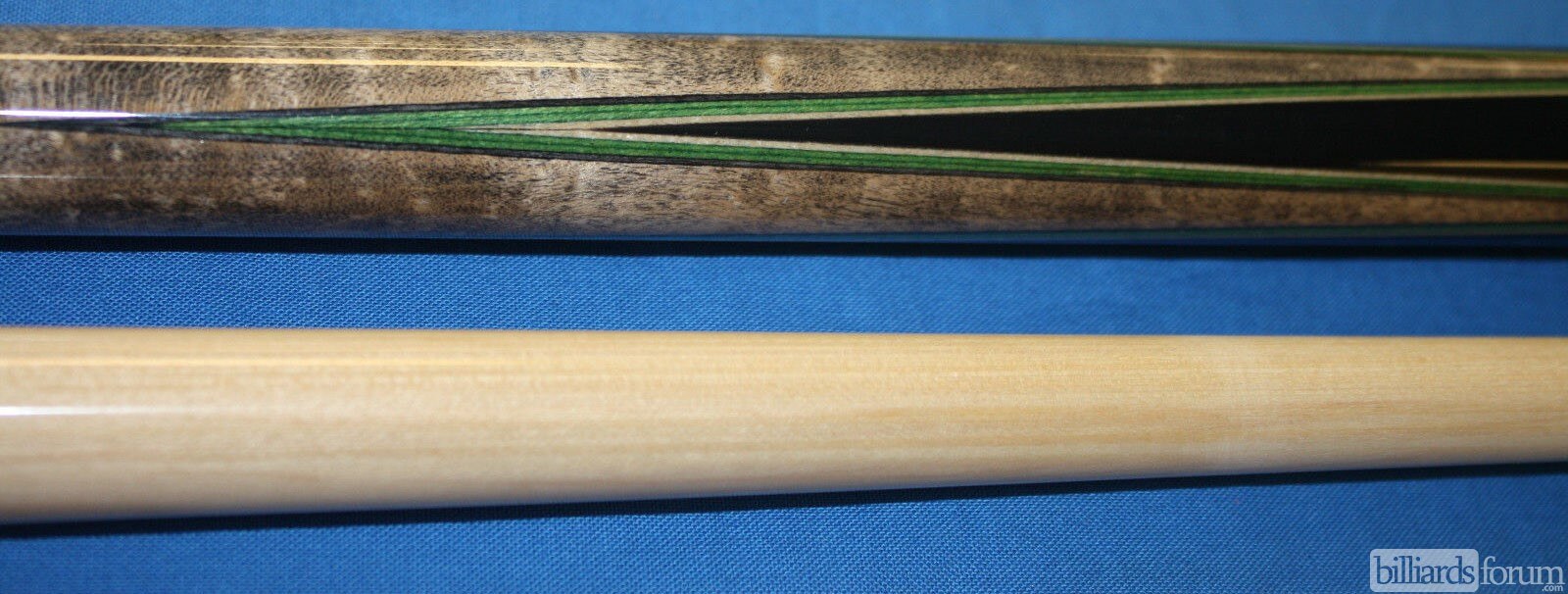 | Forearm: | Grey stain with green, maple and black spliced points |