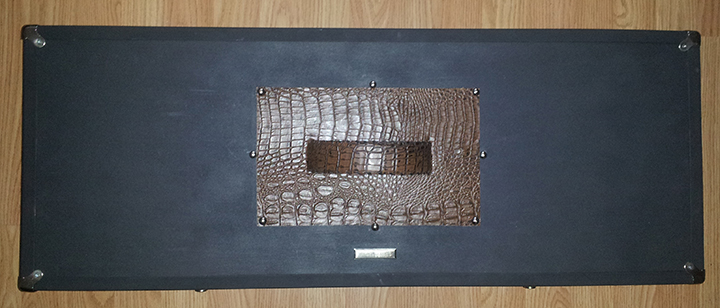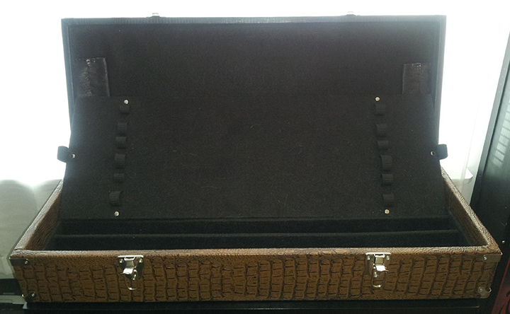 For sale is a handmade 6x12 pool cue case, made with grade-A brown gator and black lizard vinyl.