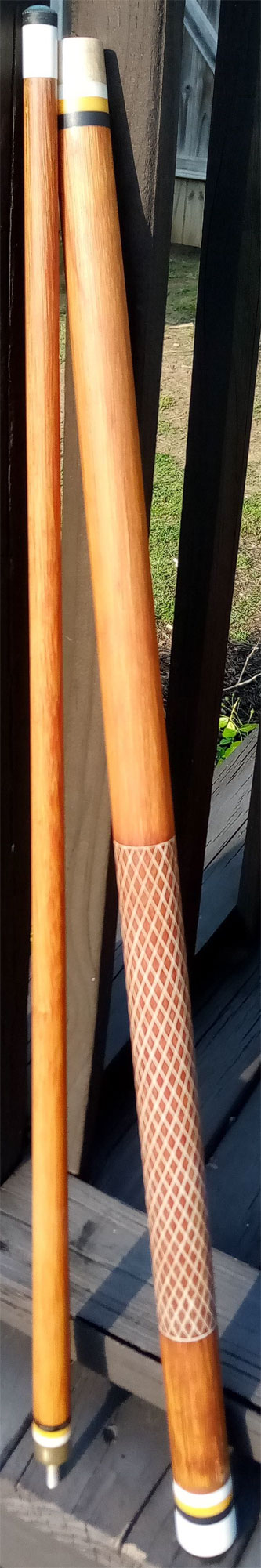 I picked up this pool cue at a thrift shop for five bucks. The sticker was long gone other than the outline, so I have no clue how old it is, much less the make or model.