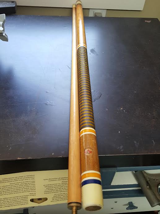 Mark Bellamy on 12/20/2017 7:31:54 PMIt is a Robinson cue. Made by John Robinson. Early cue of his as it has the brass joint. Now they are all stainless steel. Dates from the late 60's to early 70's.