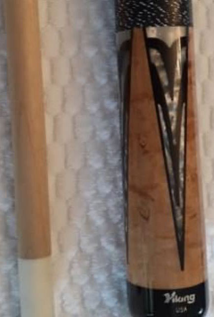 Viking F55 Pool Cue - Bird's-eye maple butt sleeve and forearm. Pearl and black-colored inlays, points, and rings.