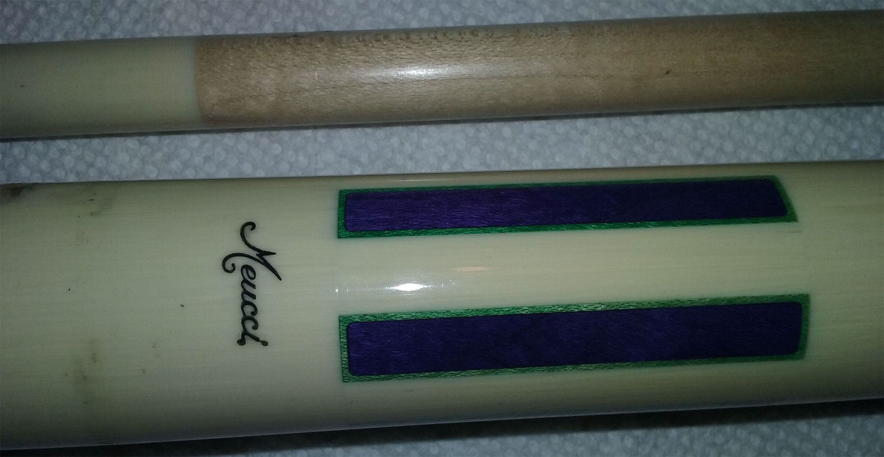 This is a 90's model meucci pool cue thats 13mm and 19 oz,,the cue is lightly used and in great shape,,rolls straight together or apart