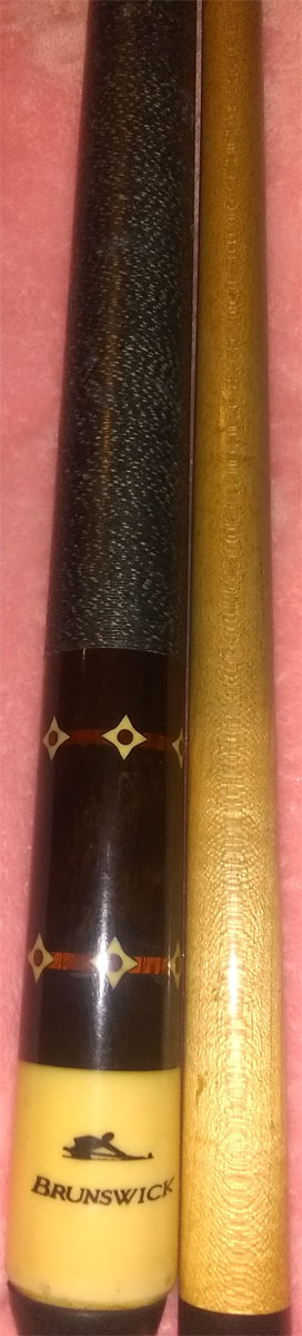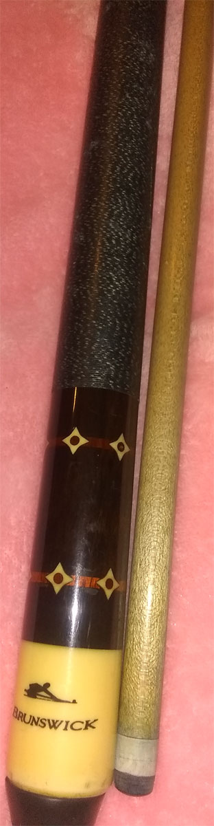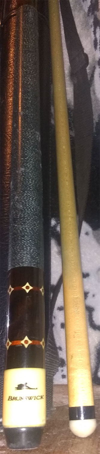 - Title: ID Cue with a "Brunswick" Logo with Pool Player