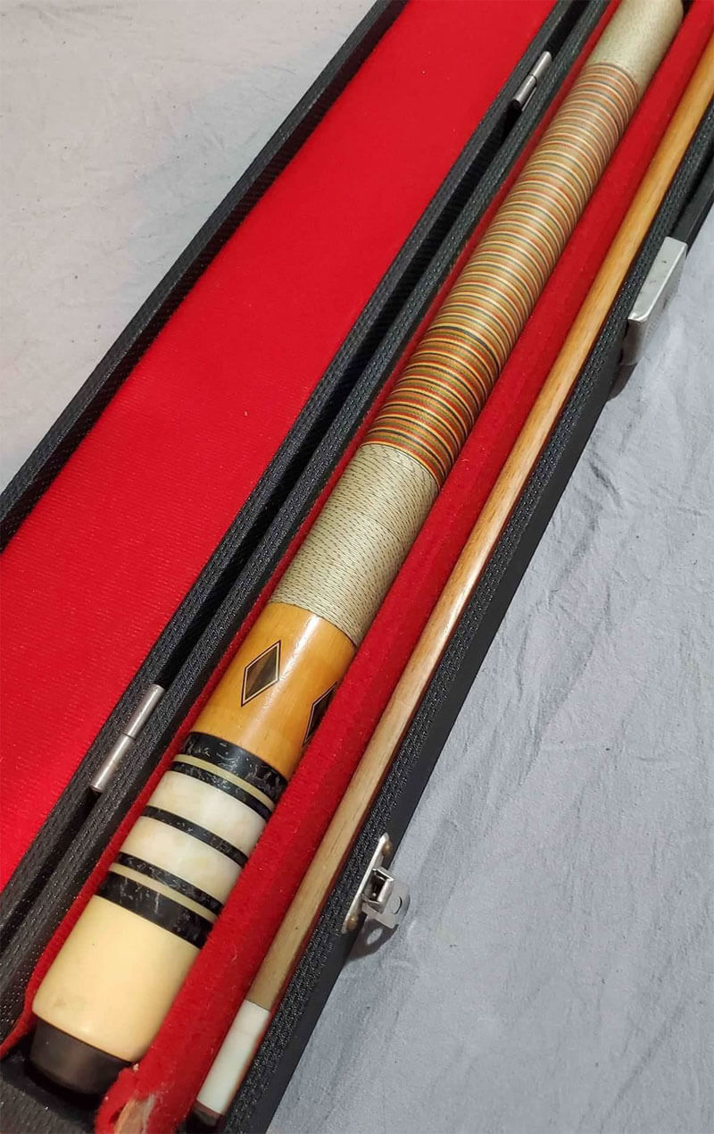 This is likely an inexpensive cue and not one from a vintage cue maker of any note but I always find these vintage cues interesting because of their use of the same or similar materials used by famous cue makers of the period.