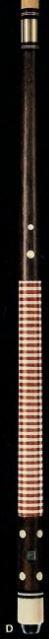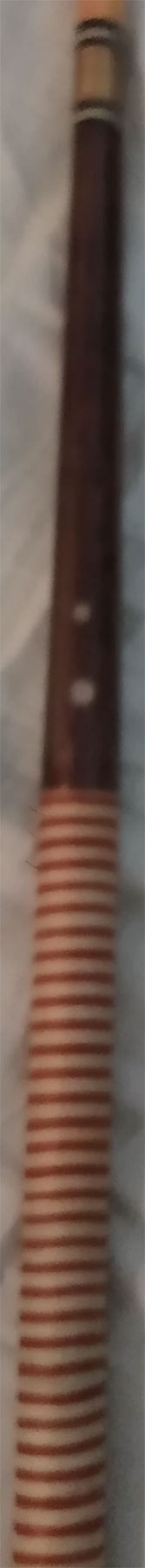 The distinctively styled cue features select Indonesian hardwood butt with brown and white nylon cord wrapped grip with pearlized inlays. Brass-on-brass joint. Solid ramine professional taper shaft. Leather tip on crack resistant ferrule and rubber cushioned end are standard.