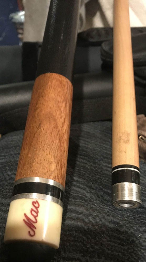 - Title: ID Pool Cue with "MAC" on the Butt Cap