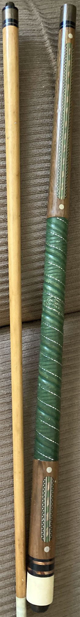 You have an Adam M/A-12 cue a.k.a. Adam M/A-12 "Billy the Kid" cue from the Adam "Bandits" series. Cues from that line were named after well-known gangsters of past. The cue that is photographed in their brochures was in blue, but the green was also common.