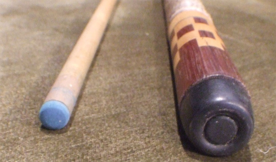 An antique checkered pool cue. Looking to identify the manufacturer and model, and it's value.