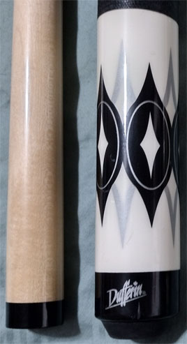 The Dufferin cue has some very small flaws and cracks at the butt end.