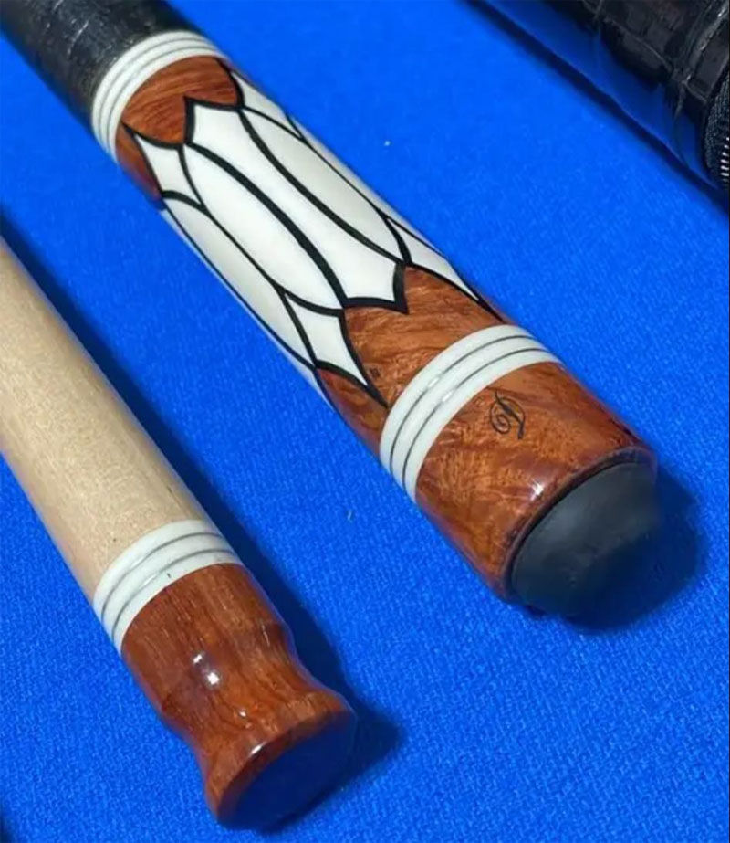 Identify a Pool Cue with a Cursive Letter "D" Logo