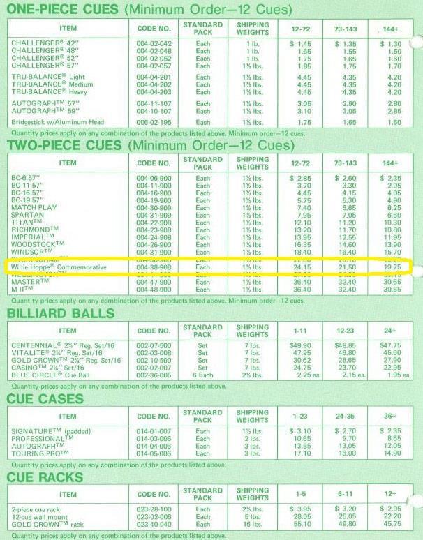 - Title: Identify Brunswick Willie Hoppe Commemorative Pool Cue