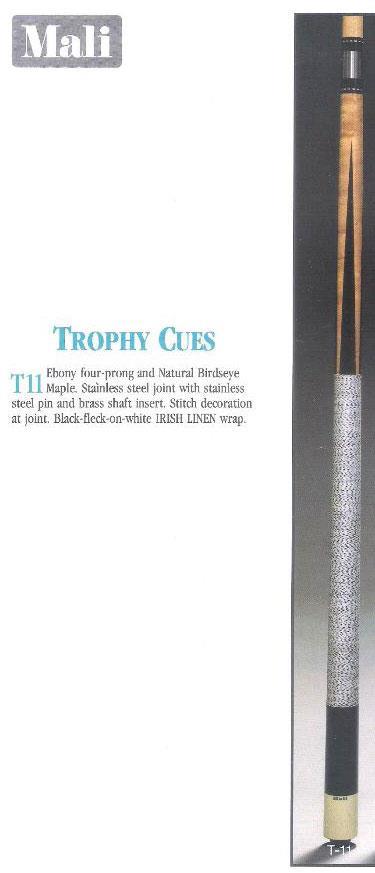 billiardsforum on 11/20/2018 12:06:25 PMIt is probably a Mali T-11 cue from the Mali Trophy Cues series (circa 1980s I think).