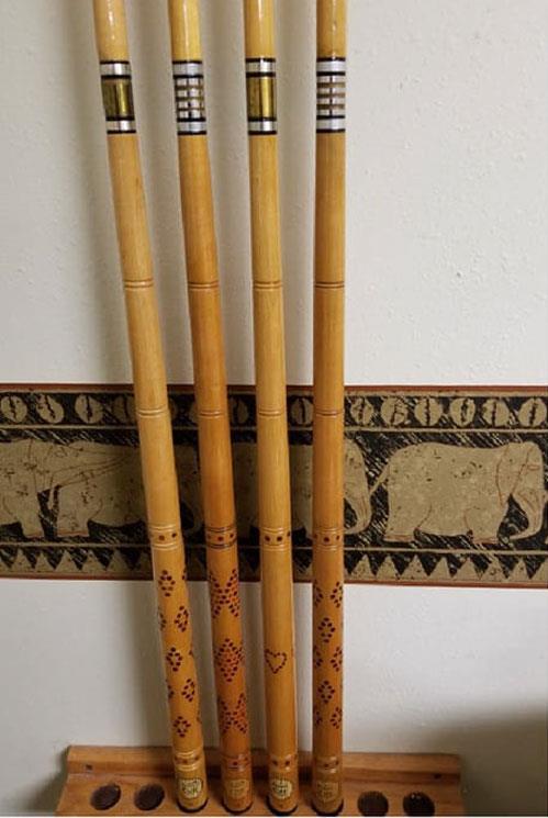 Here are a few of his pool cues that I have. There are family and customers that have so many more.
