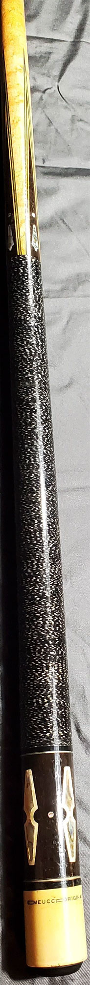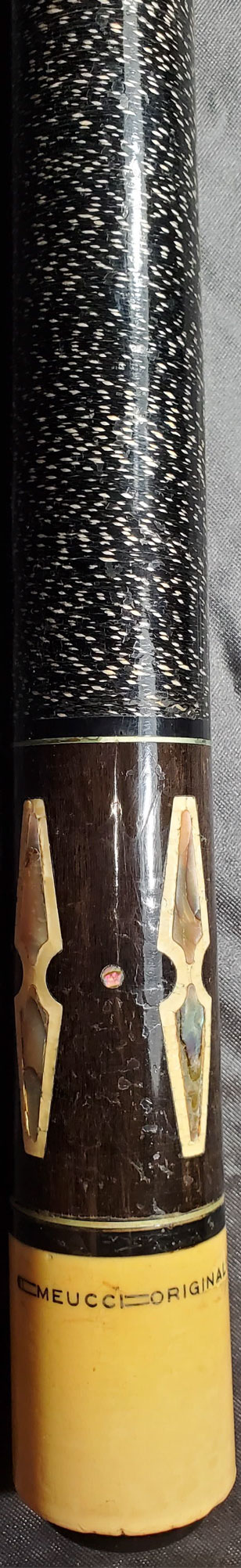 We do storage auctions and found three Meucci cues (this one and two other newer models with "Meucci" in cursive lettering).