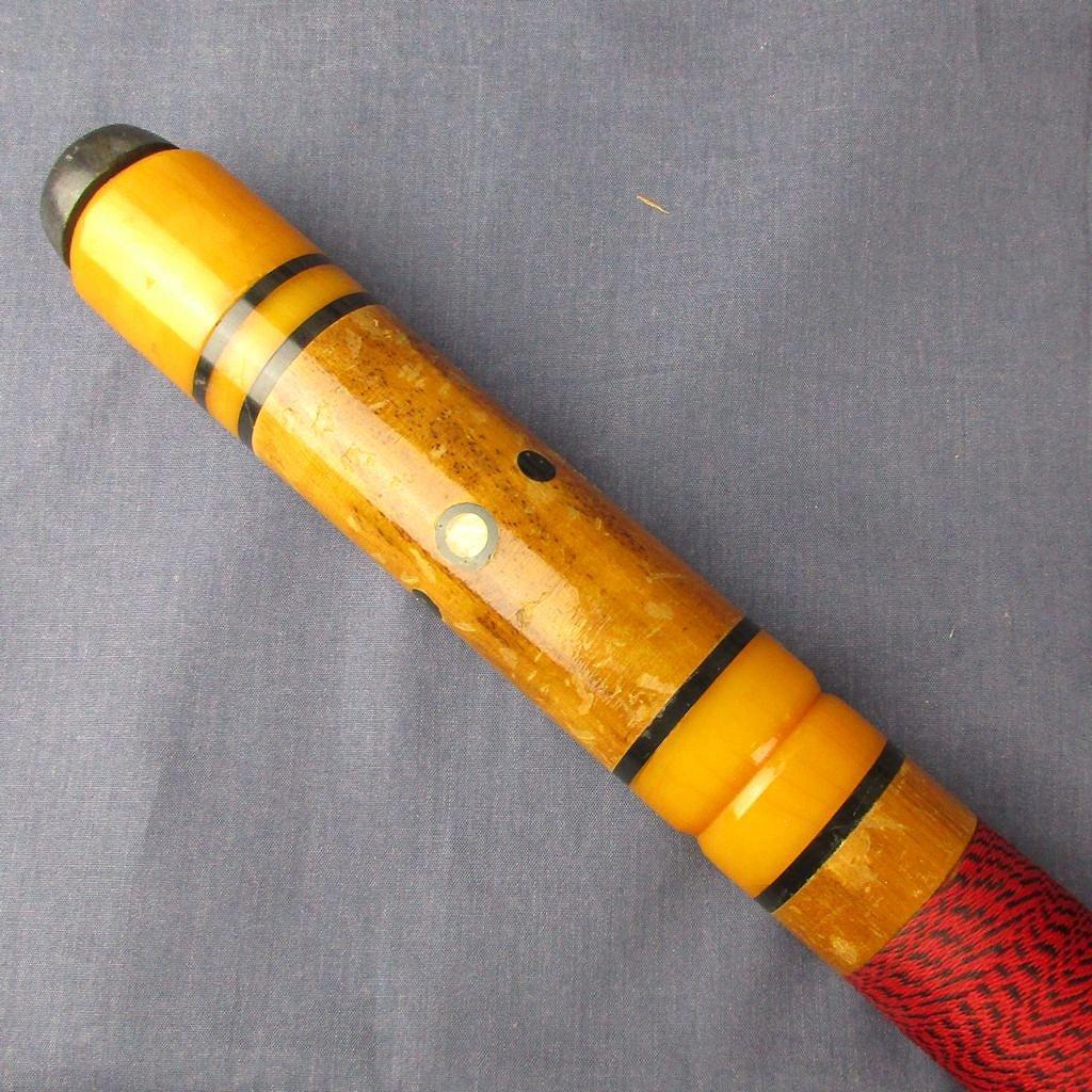- Title: Mid-Century Pool Cue or Earlier, Red Linen Wrap, Dot Inlaid Cue