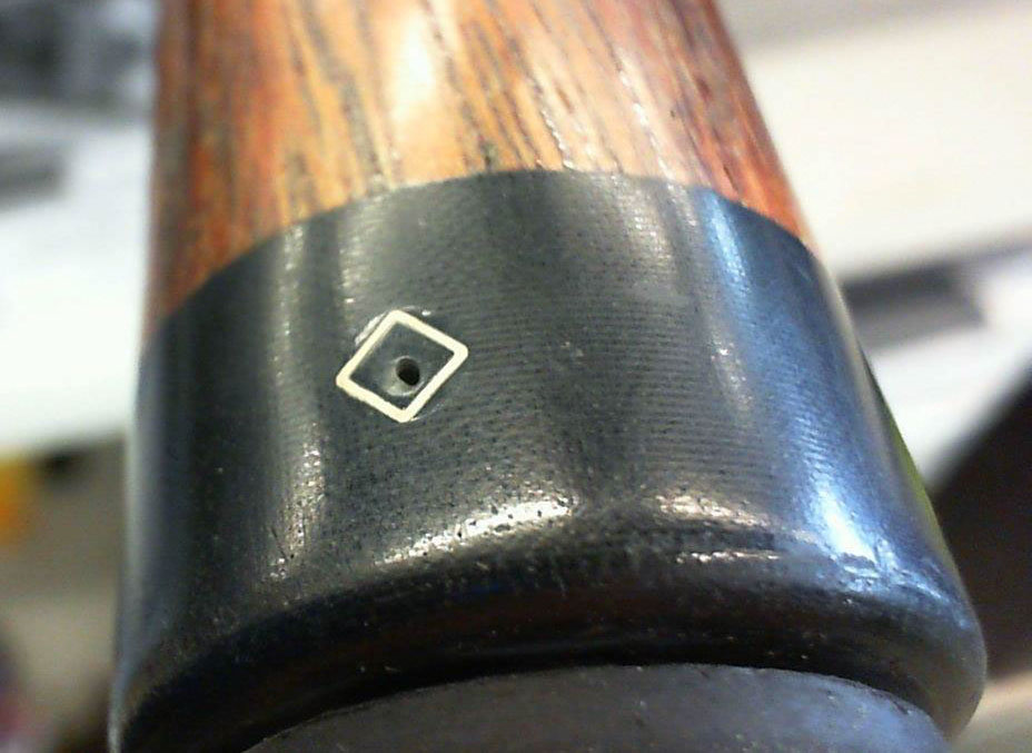 Can someone identify this pool cue with a small pin-hole in the butt? There is a small diamond symbol and the pin-hole is in the center.