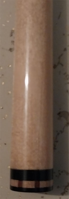 It has a chrome-plated brass joint. I believe it is a plain 4-point Rosewood handle (I think), into a maple forearm. The shaft has the same black collar with windows.