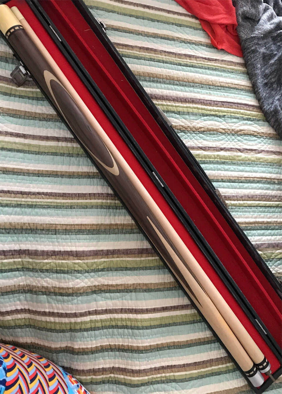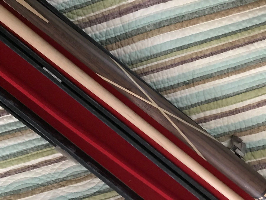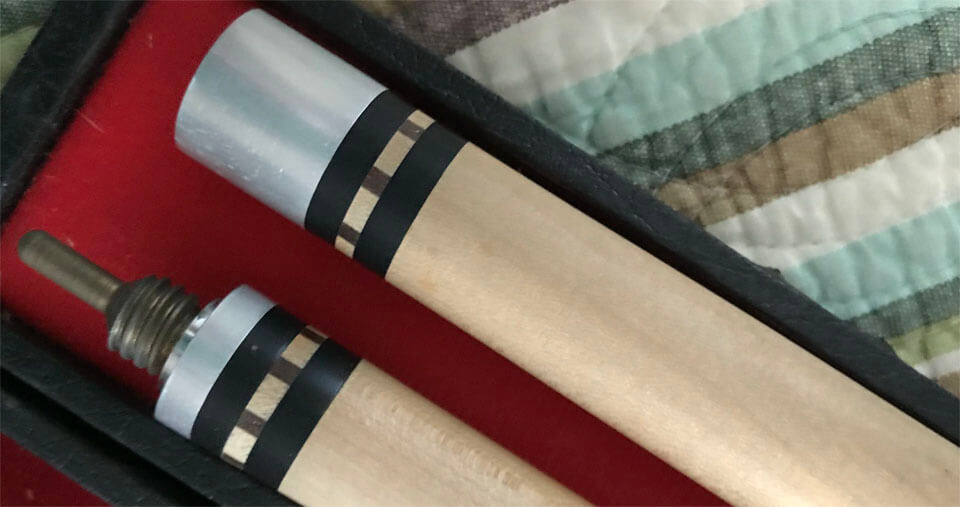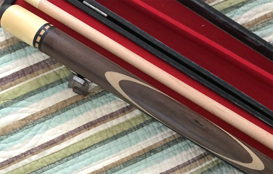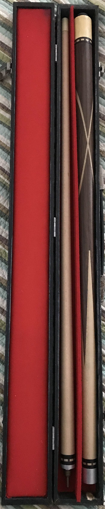 This is a wood pool stick. Very pretty. Came in a black covered wood case with red lining.