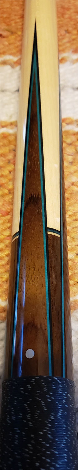 It has beautiful real inlays, great colors, and it's in perfect original condition. I will say actually that it's not "perfect" as it has wear on one shaft. This one has normal color change due to "chalk finger". The other shaft, matching, has never been used.