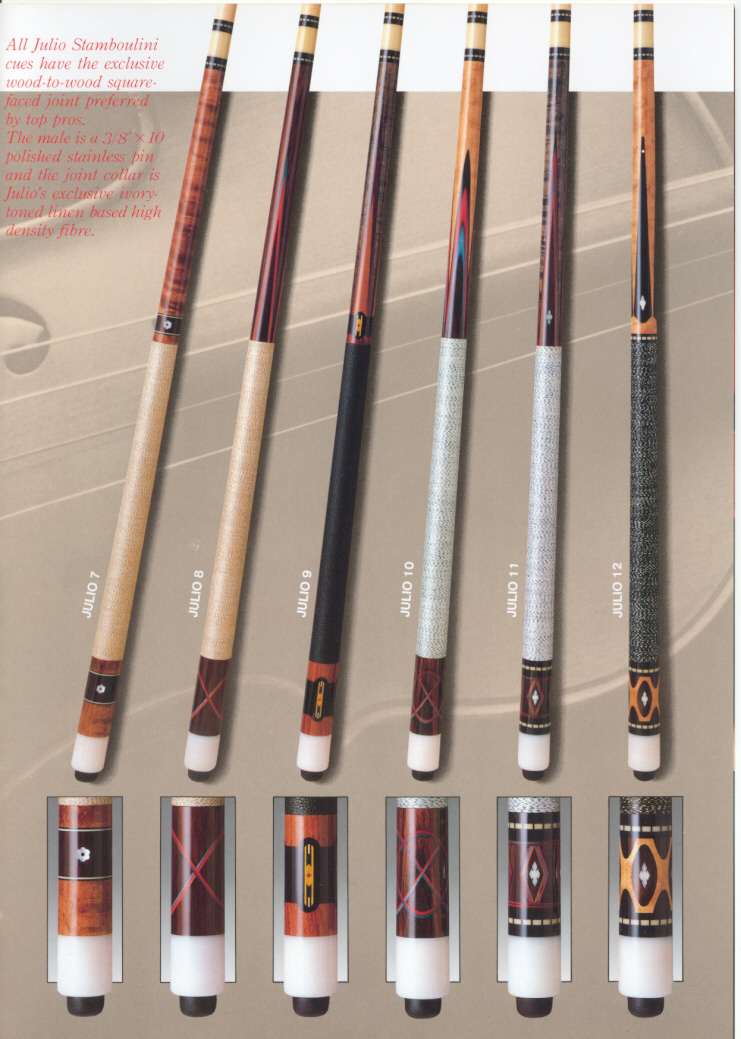 I'm looking for someone who owns the 3rd edition of the Blue Book of Pool Cues. The thing is, I own two Stamboulini pool cues (the old series), and I hear rumors that they can be worth quite a good deal of money nowadays. I have the 2nd edition of the book, but prices have gone up since. So, is there anybody who owns the book that can inform me on the values of Stamboulini cues? The picture I added show the numbers 7-12 in the original series, I own both the 10 and the 12... Thanks,