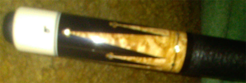 I am told this is a Ginacue #14B cue with ivory inlays and joint protectors.