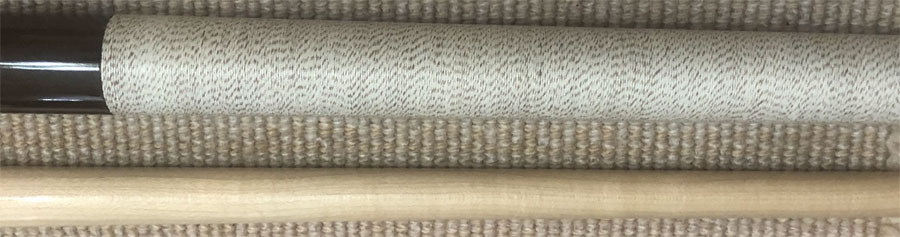 I've had this jewel of a cue for at least 10 years. I've played with it regularly and it is one of my favorite cues. The maple wood in the forearm and butt are what I call "dense and matted" with beautiful patina. The wrap is Cortland and needs a clean up on the end. The ring-work is very stylish and eye-catching. The shaft really matches the forearm in color and is made from curly maple. Both pieces roll flat on my table, apart and together. The cue is really a good hitting and good feeling piece, everything came together right when this cue was put together.
