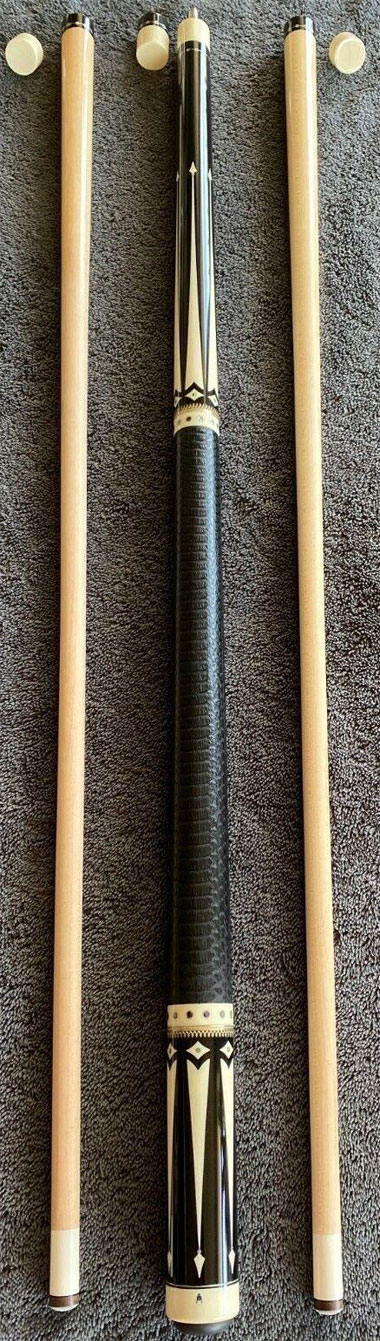 I am selling a Bill McDaniel pool cue with two shafts. Ivory darts and diamonds. Silver crown rings and silver circles. Black lizard wrap. Ivory joint protectors included.