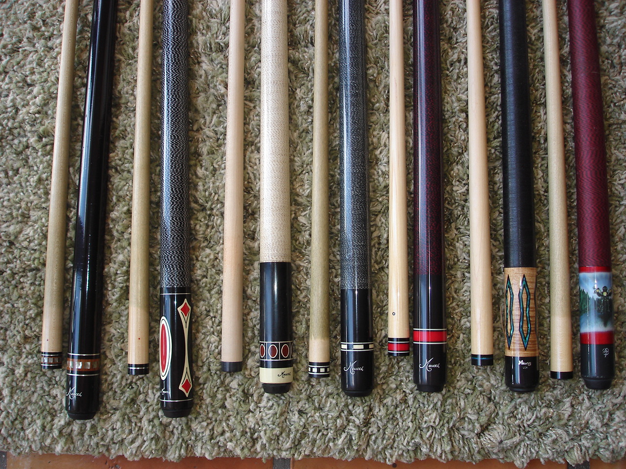 7 nice pool cues for sale under $250.00 each. Post here or send an email message for more information. I can reply to email messages for more, or better pictures.TextThe five cues on the left are Meuccis, then Viking F-52, McDermott HD-6 is on the right