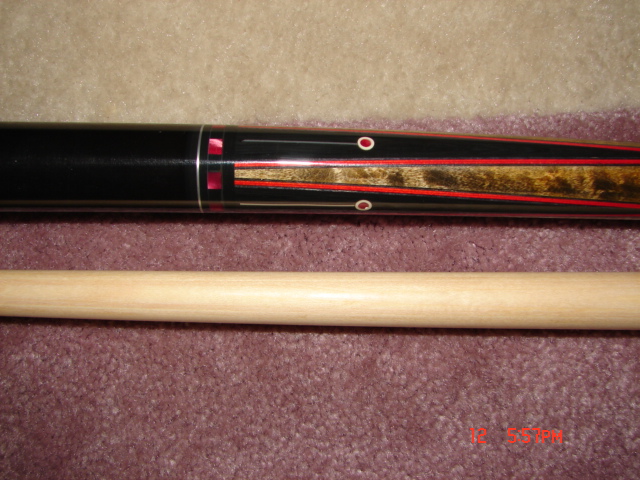 This listing is for a NEW, signed, dated, BMC Candy Apple Red cue, with one NEW "black-dot" shaft. I've had this cue about one year and never chalked it. They retail for $600.00, sell this one for $375.00, plus shipping, that is $20.00 including insurance. Ship ONLY in the USA, ONLY to a PayPal verified address, AFTER PayPal clears the payment.