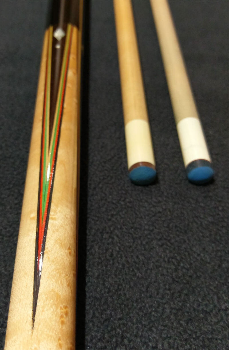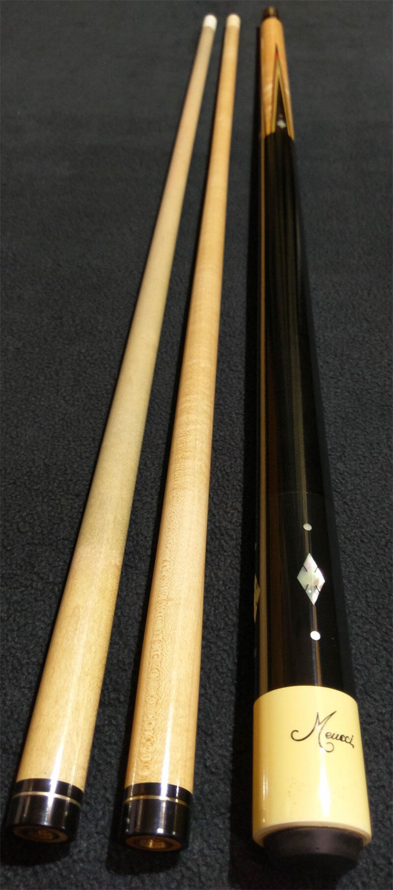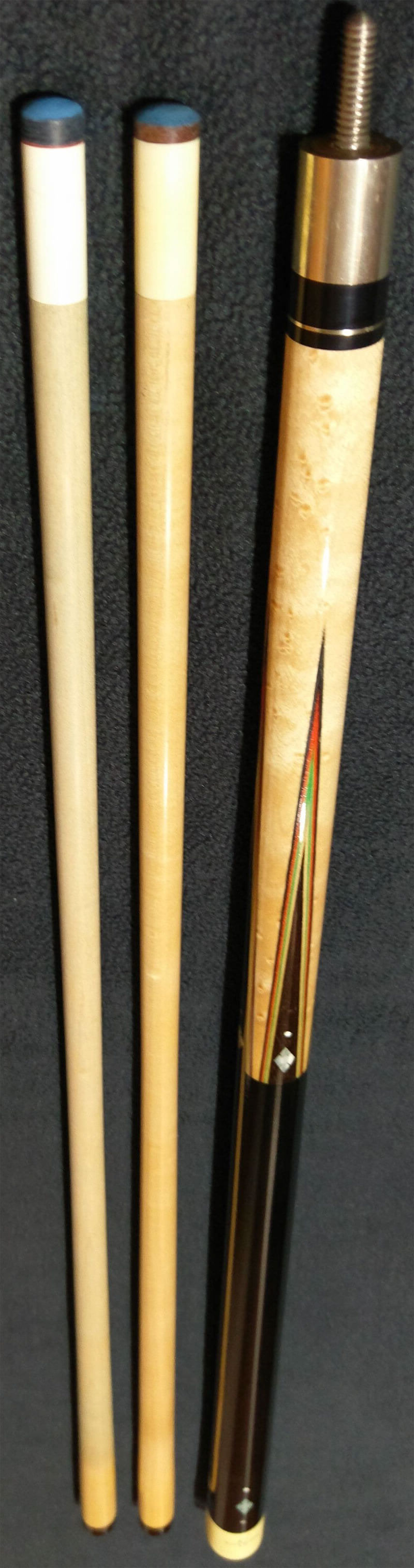 I am selling my Meucci cue with 2 bird's-eye maple shafts. One has a breaking tip and one has a longer taper with a soft Kamui tip.