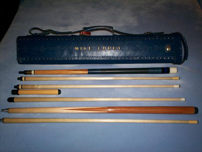 1969 Pamler Model "A", Wayne Gunn Sneaky Pete This is my Jay Flowers case with my 1969 Pamler Model "A" and my Wayne Gunn Sneaky Pete. The short handle is a sawed off Sneaky that I made my own Jump cue out of back in the early 80's.
