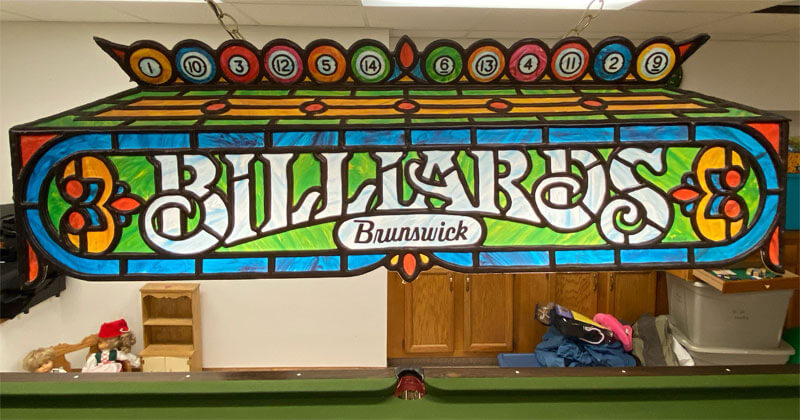 The Brunswick Arcadian pool table is available in four legs or six legs. It is manufactured under 22 construction patents awarded from 1900 to 1916.
