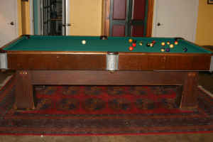 dduffit I have a table that is the same profile as the one you show in the restoration photo. Like yours mine was a mess and I am in the process of redoing it is playable at the present, however I am going to replace the rails, cushions and pockets in the future. At present it is a snooker table and I am going to convert it to a regular pool table. I would appreciate any info you have regarding the model etc. of your table. Thanks; DonP47