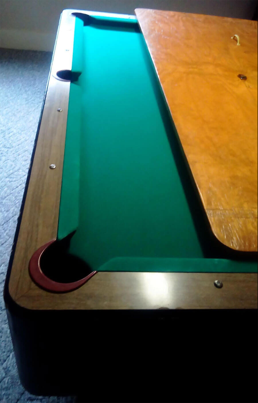 - the red pockets (which, on my table are 1/2 in smaller than standard),