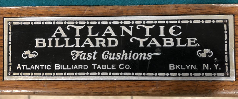 I am wondering if Atlantic Billiard Table Co. made it, or it is possible that it was re-branded as Brunswick? Any help pointing me in the right direction would be appreciated.