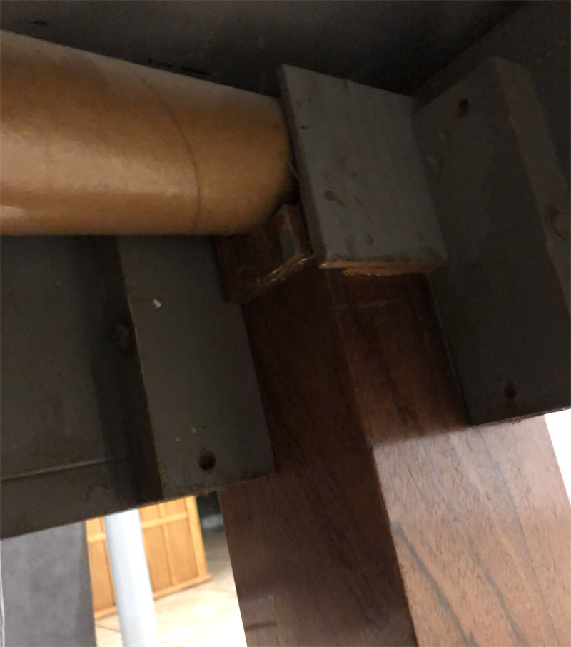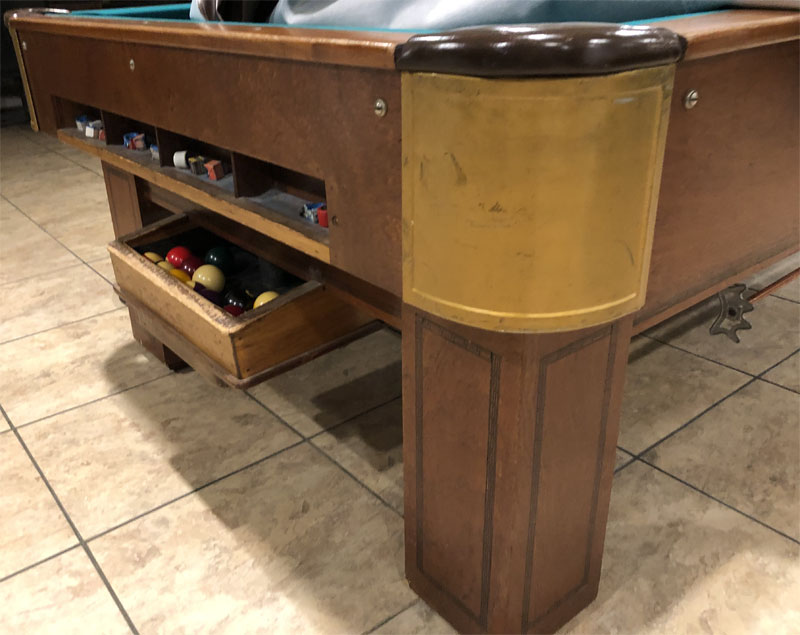 Only the front two short tubes are original, and the four other longer ball return tubes were replaced by me. I made them from thick cardboard rolls that carpet comes on. It was done without any modification to the pool table at all, and were based on another Atlantic Billiard Table Co. pool table I saw.