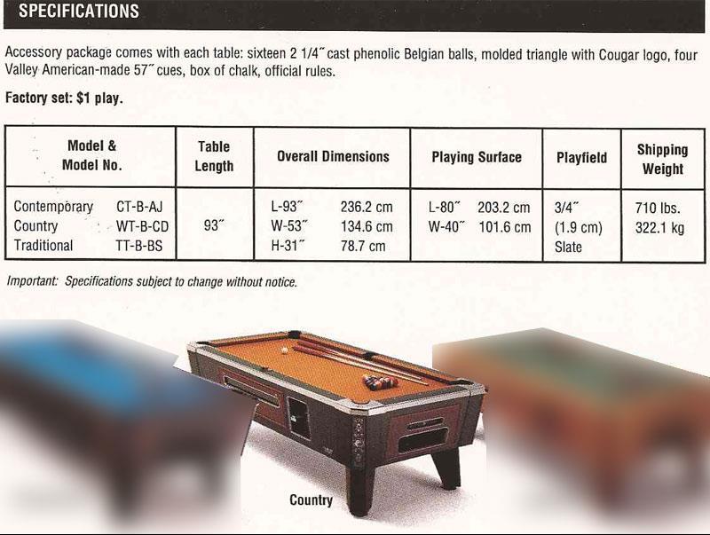 Here are some brochures related to the Valley Country pool table: